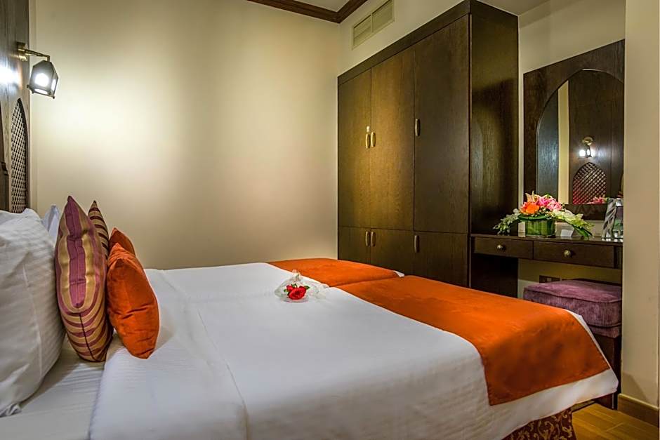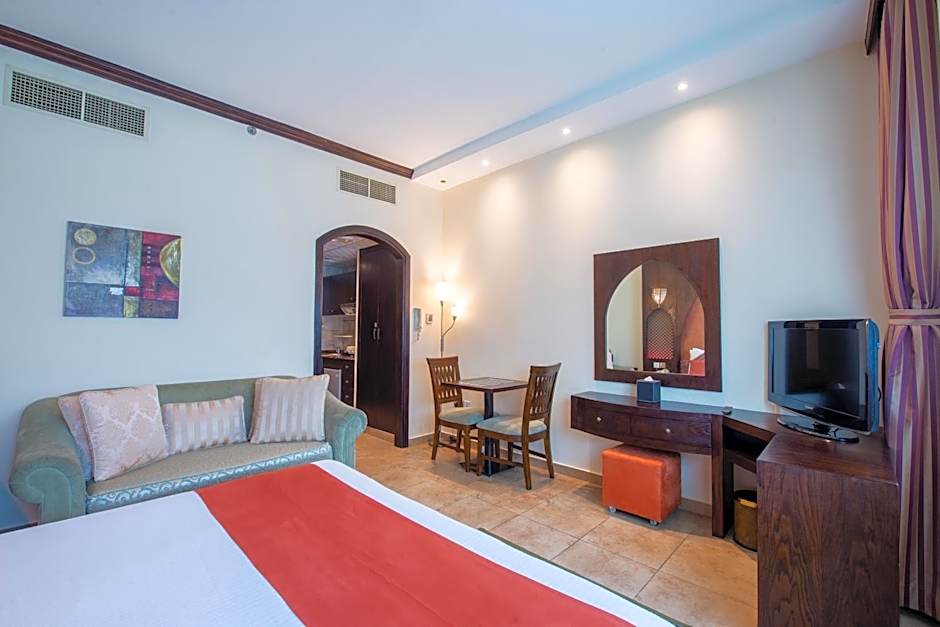 Featuring an Arabian-inspired modern décor, this air-conditioned suite has a seating area with a flat-screen satellite TV. The kitchenette has a microwave and a separate dining area.